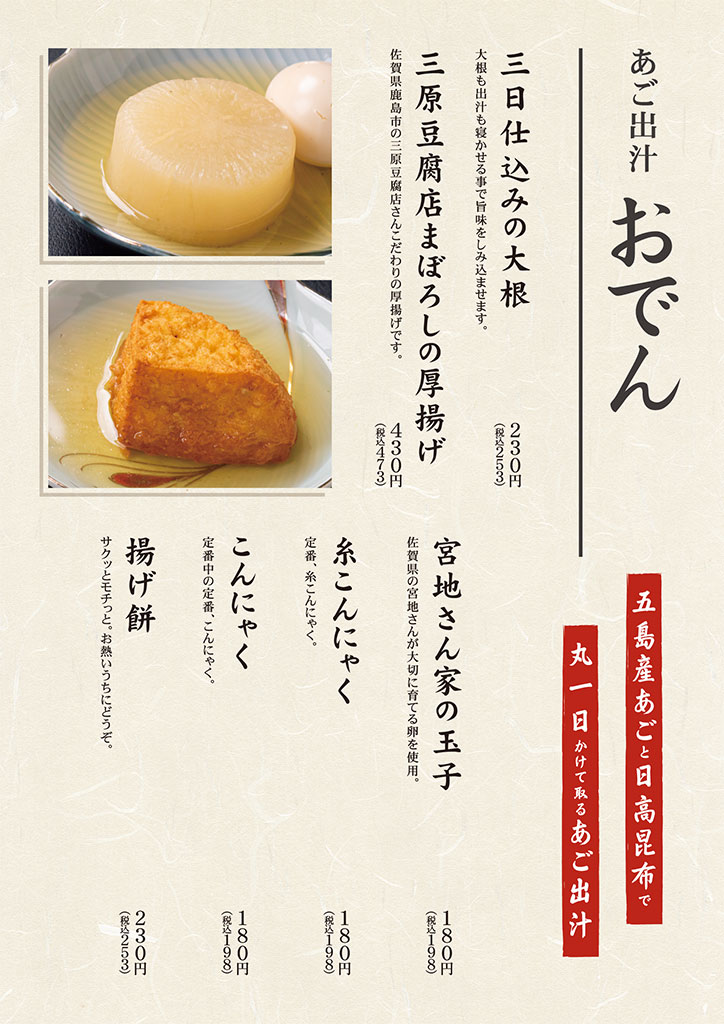 | 営業時間 | 月~土 16:00~23:00 日・祝日 16:00~22:00 |