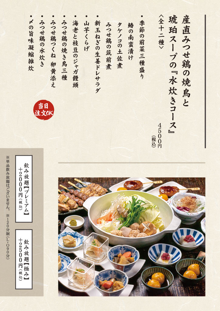 みつせ鶏を味わって欲しい!それが炭寅の原点。 炭寅、炭寅はなれ、ひなっこ、やきとり亭ひなっ子の各店舗では、佐賀県三瀬村で自社開発、生産した赤鶏「みつせ鶏」を焼き鳥、水炊き、一品料理でお楽しみ頂けます。お取り寄せ商品もご用意しております。サイト内オンラインショップからどうぞ!