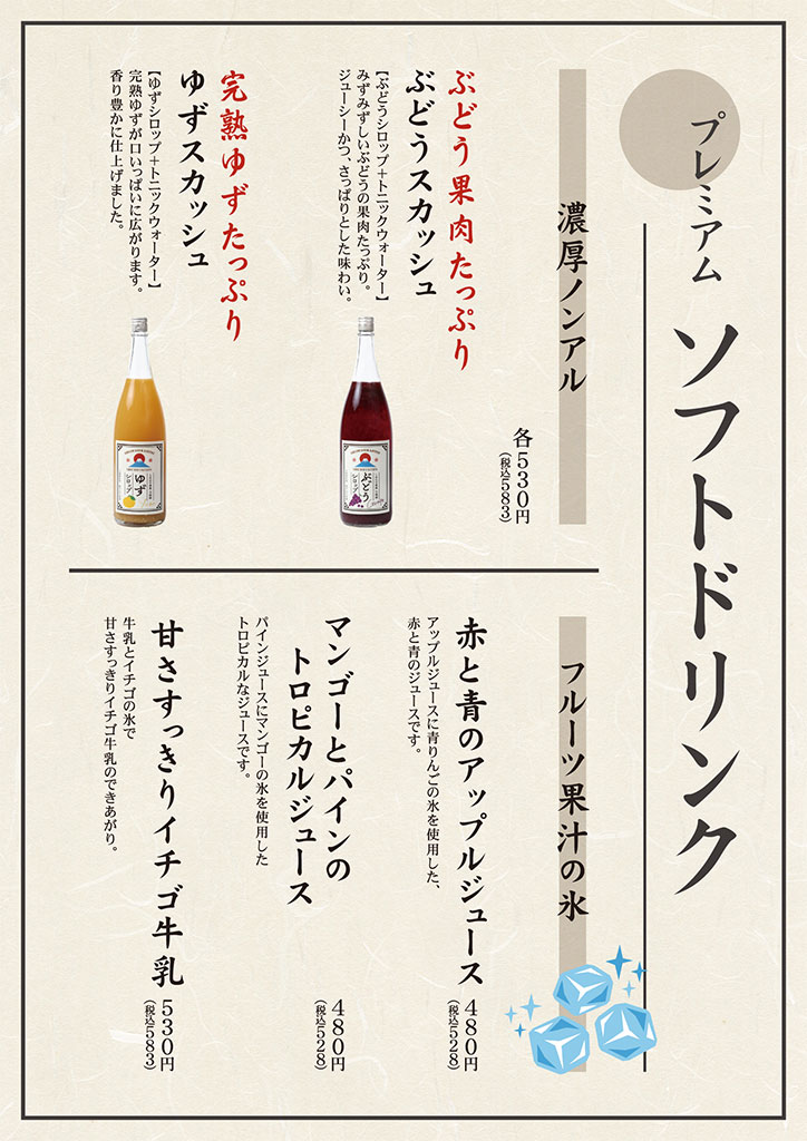 ドリンクメニュー(2026/1/20現在)