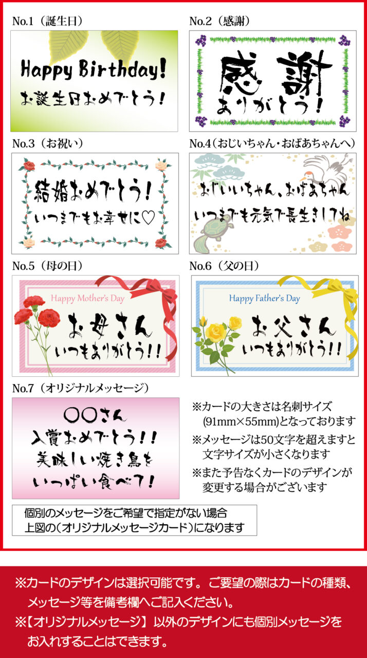 ※メッセージカード番号とメッセージ内容をお知らせください。